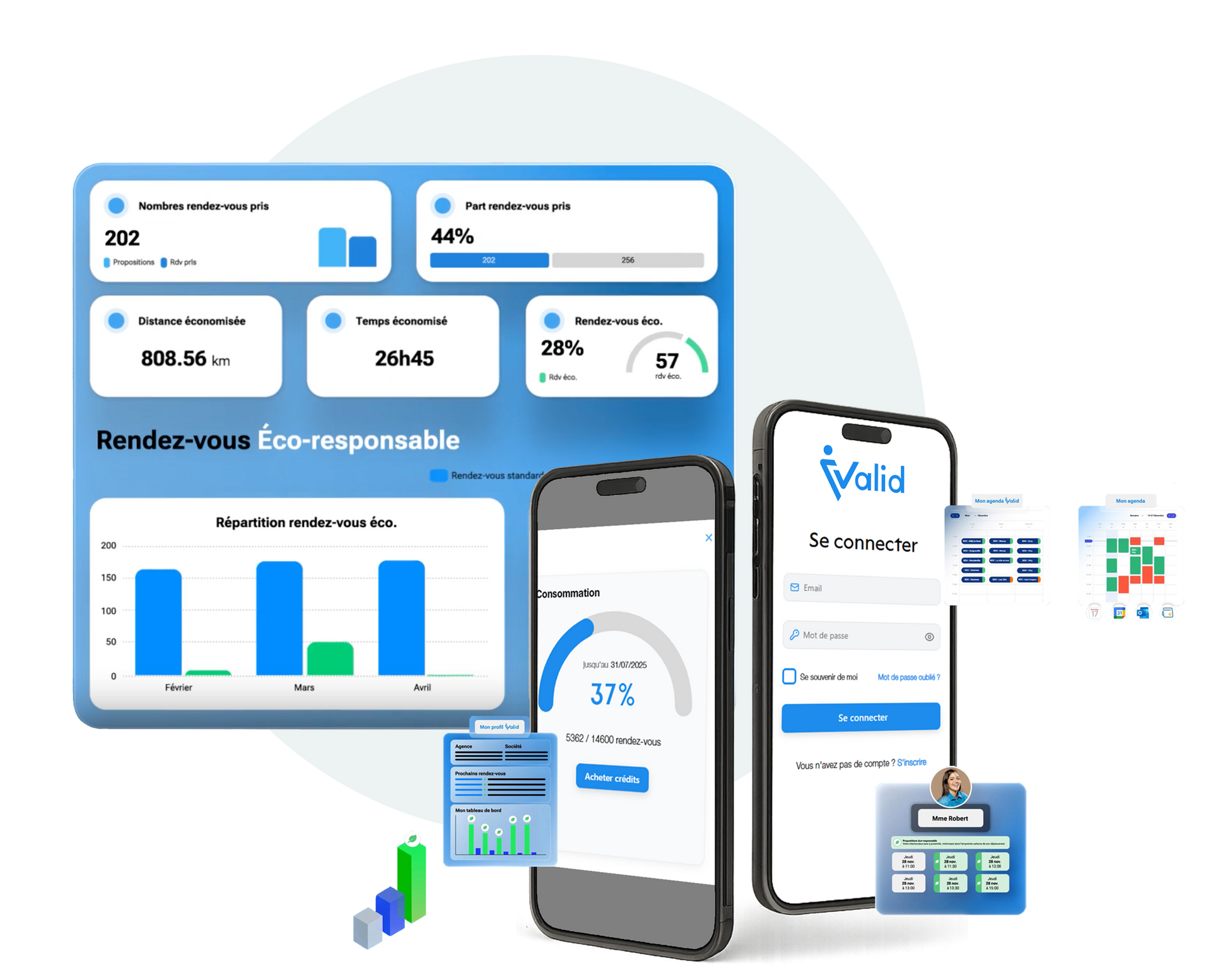 iValid est une solution 100 % cloud, accessible depuis n’importe quel appareil : ordinateur, tablette ou smartphone. Son interface s’adapte automatiquement à chaque écran pour garantir une expérience fluide, que vous soyez au bureau ou sur le terrain. Compatible avec tous les navigateurs modernes et intégrée à vos outils métiers, iValid assure une interopérabilité totale avec vos CRM, ERP et calendriers externes pour une synchronisation en temps réel.