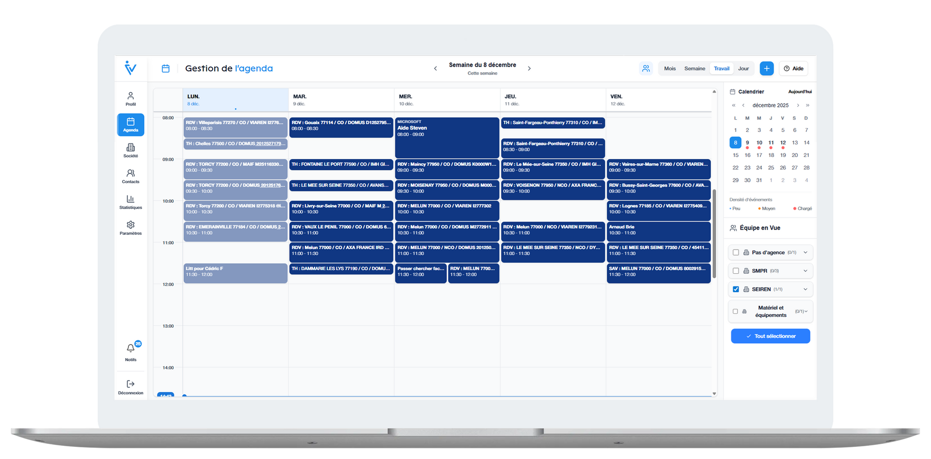 iValid simplifie la gestion quotidienne des rendez-vous et l’organisation des équipes terrain. Depuis une interface claire et intuitive, visualisez les plannings, ajustez les tournées et suivez en temps réel les disponibilités de vos collaborateurs.
